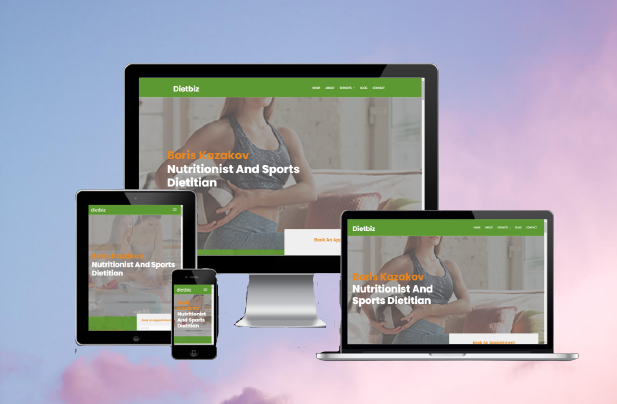 Perfect site for a nutritionist with attractive design bookings and